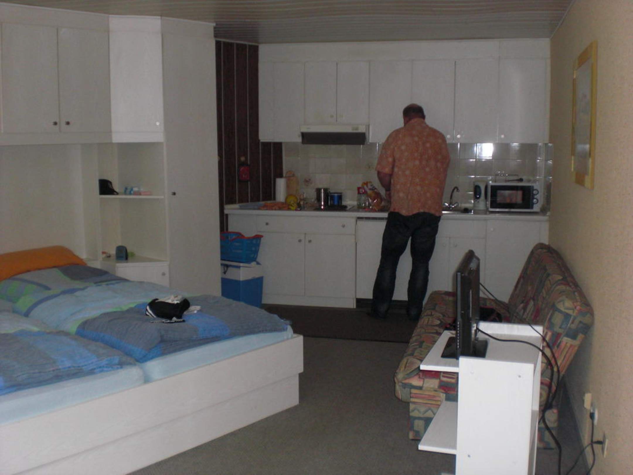 Die Küche war ausreichend, um für den kleinen Hunger zwischendurch etwas zuzubereiten. Wasserkocher, Kaffeemaschine, Mikrowelle mit Grill, Kühlschrank, Herd mit 2 Platten und die wichtigsten Küchenhelfer waren vorhanden.