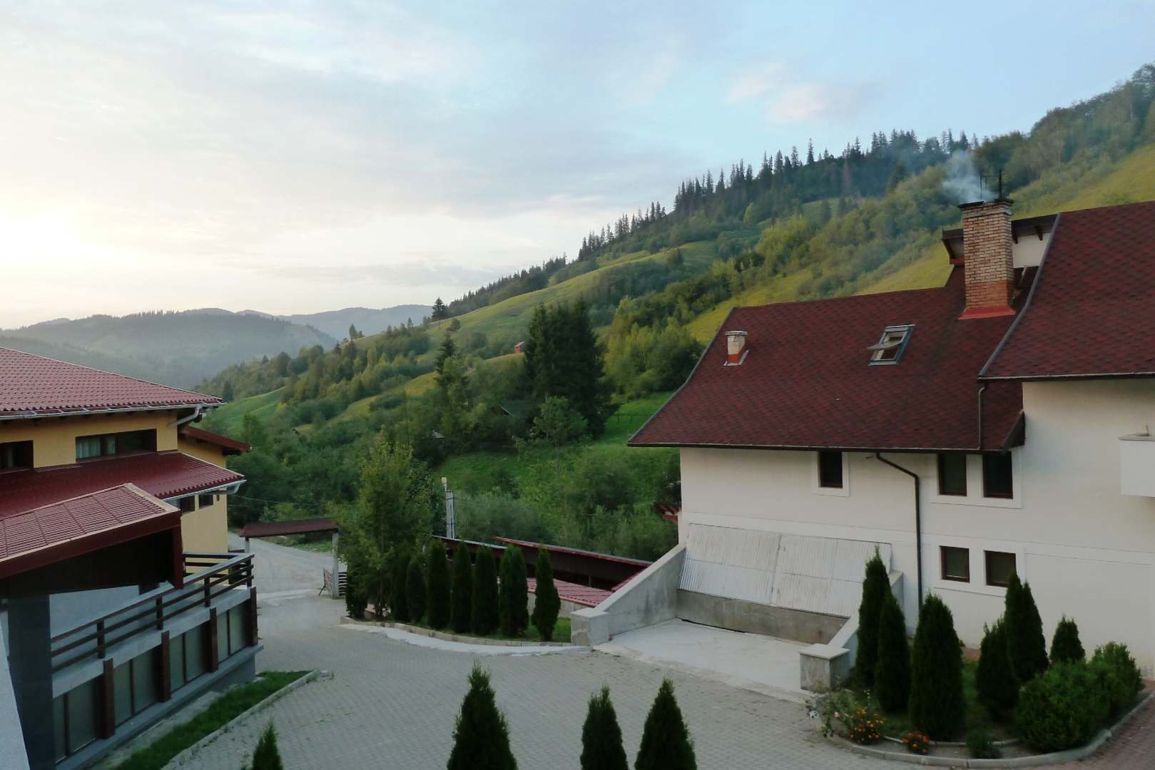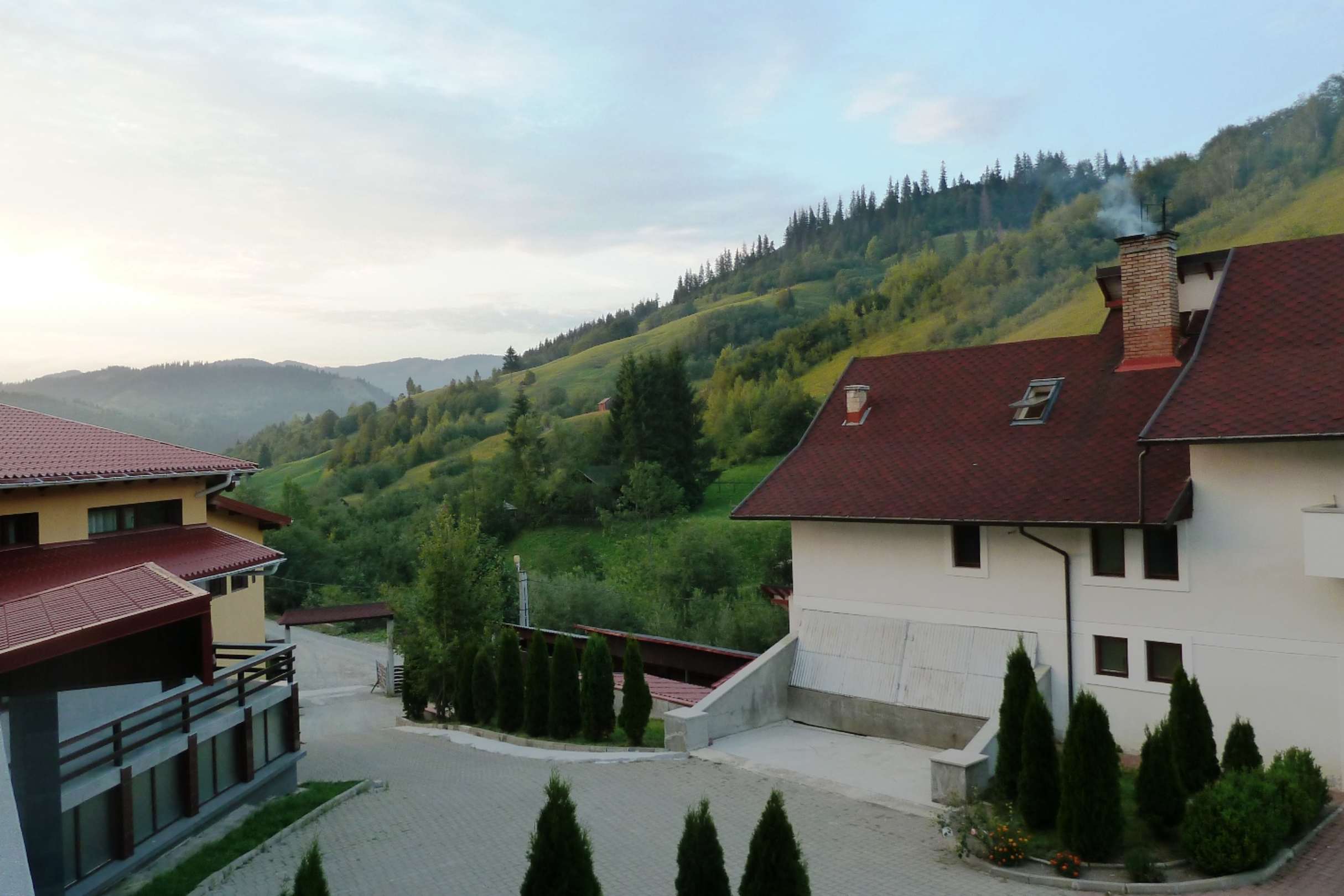 Ausblick zum Eingangstor des Hotels "Sandru".