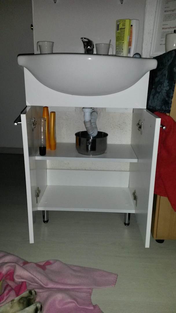 Waschbecken lief schlecht ab, Topf fing Wasser auf, Wasser stank, Topf musste von uns selbst geleert werden. Problem offenbar bekannt, warum keine Reperatur?
