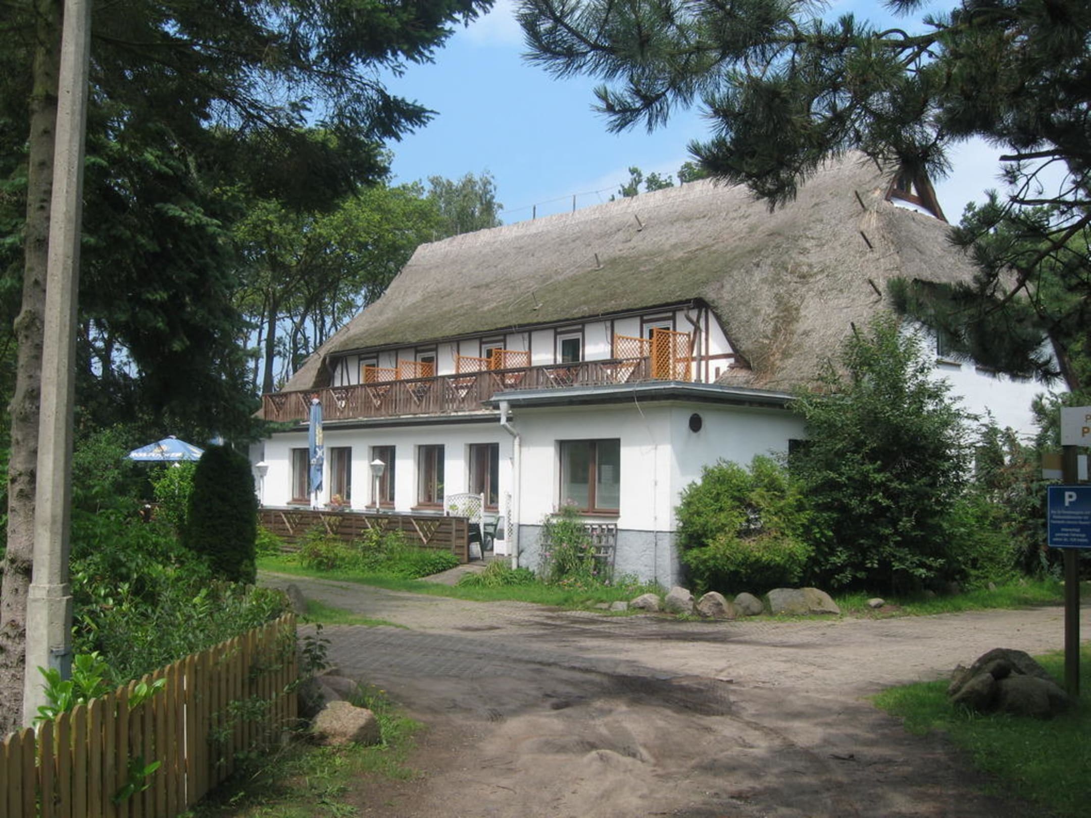 Pension Strandnest mit davor liegenden Biergarten