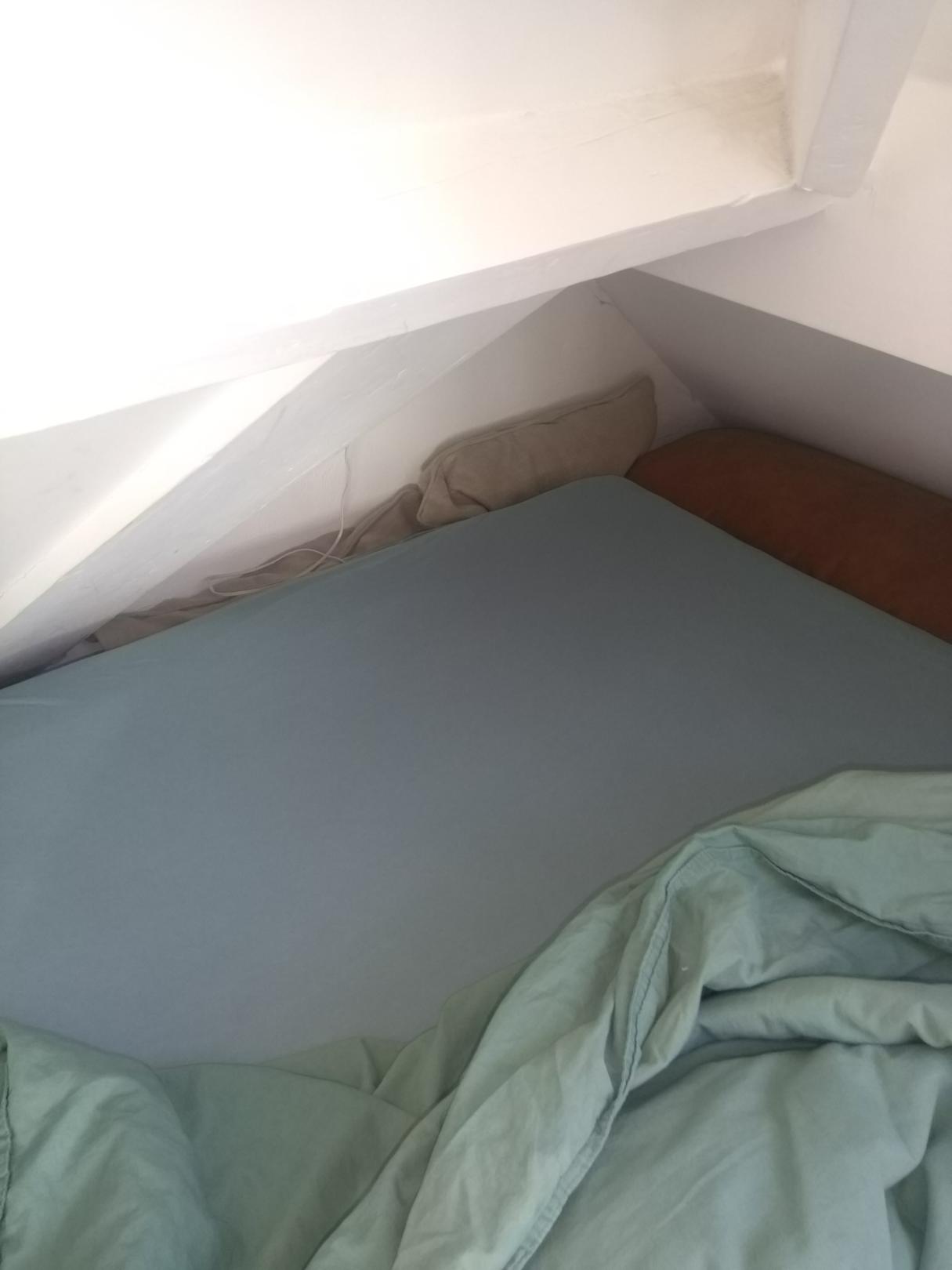 Ecke bei dem zweiten Bett alles wird irgendwie in die Ritze geklemmt.