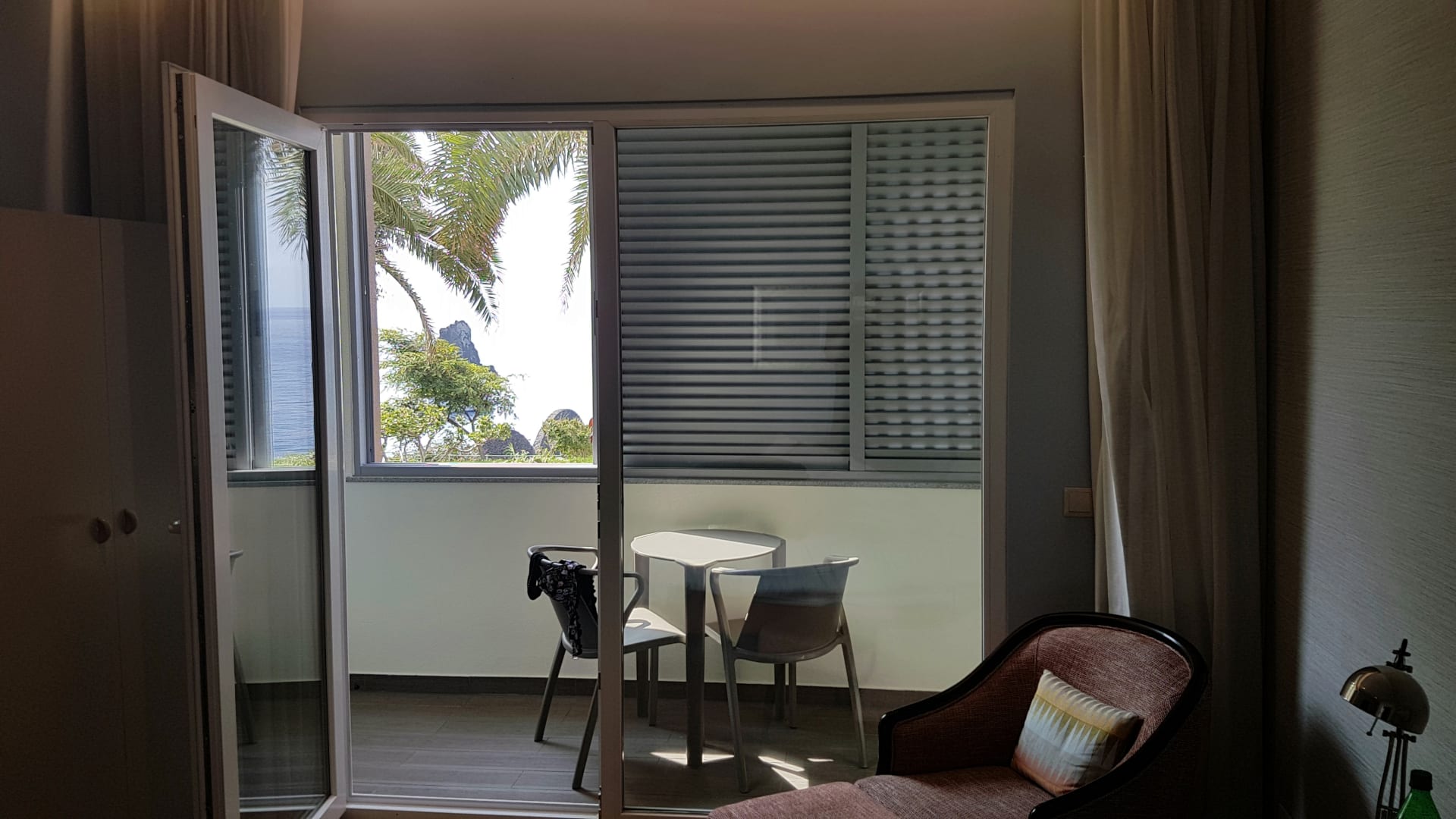 Aussicht aus dem Hotelzimmer 1031 und der mickrige Balkon ist zu sehen.