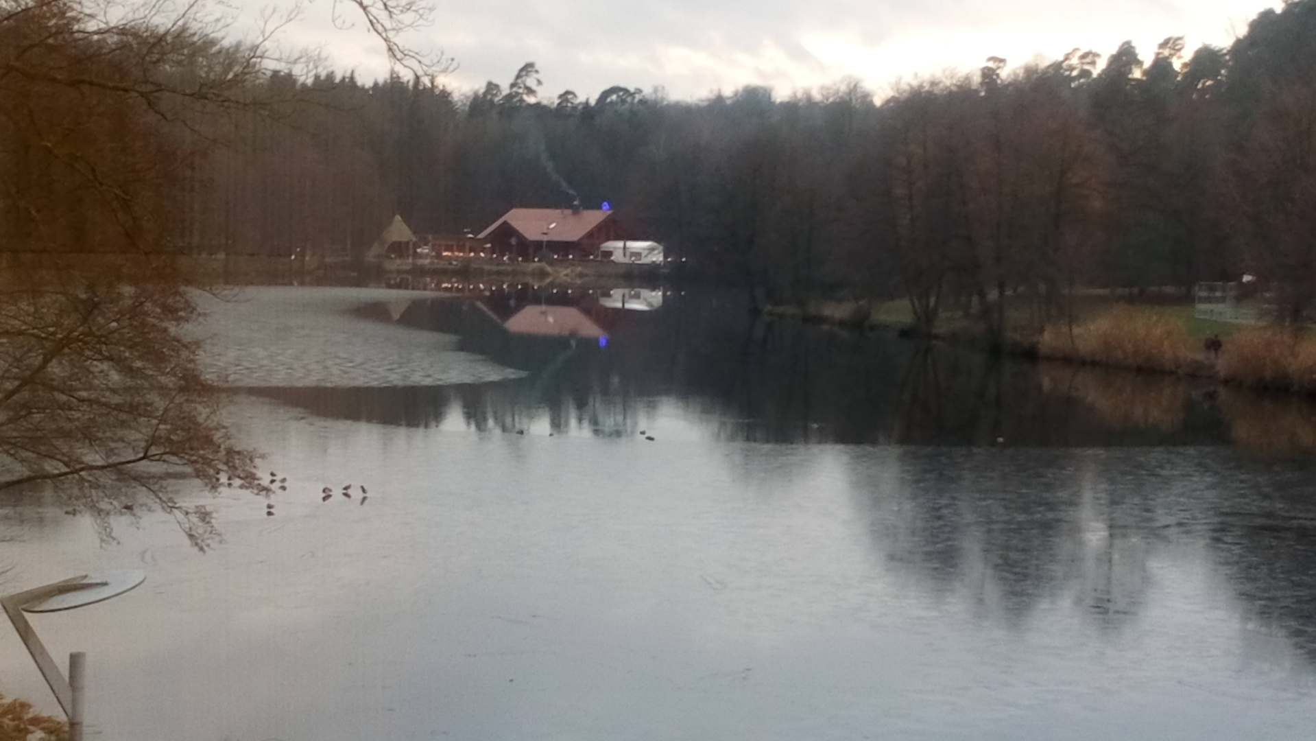 AusblickDer Weiher ist zum größten Teil zugefroren. Nicht betreten!!! ( zu dünn ausser für Enten)
