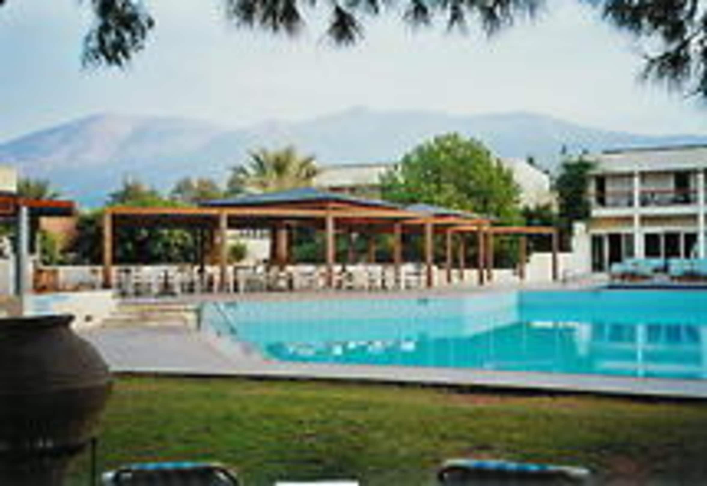 Schöne AussichtenBlick über den Hauptpool auf das Hauptgebäude und die angrenzenden Berge des Dikti-Gebirges