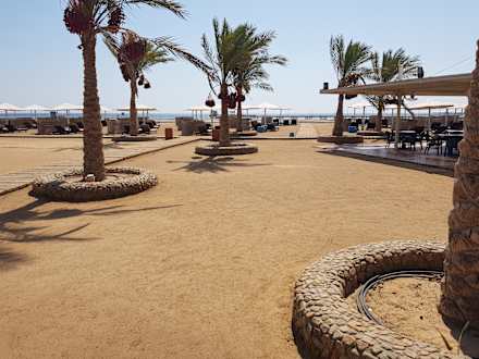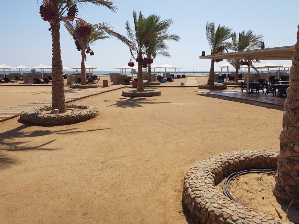 StrandRechts ist die Strandbar zu sehen. Links außerhalb des Bildausschnitts ist ein Volleyball- sowie ein Fußballfeld direkt am Strand.