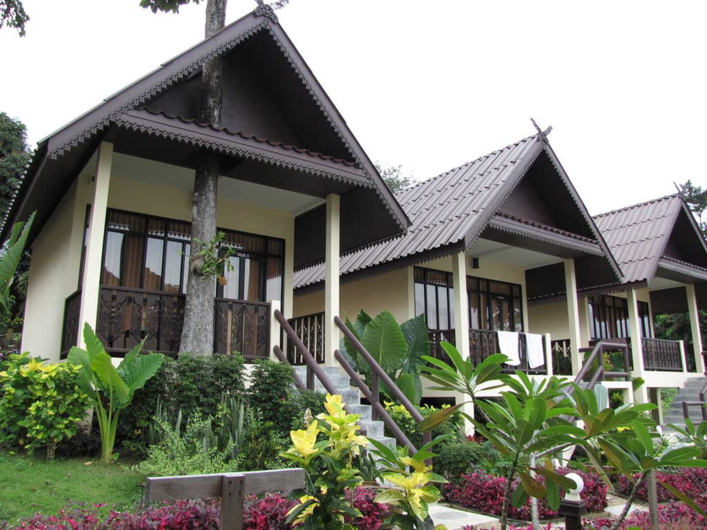 die schicken Bungalows befanden sich im schön bepflanzten Garten