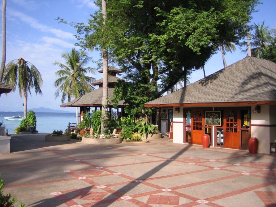 (von rechts nach links) Hotelshop,Tauchschule(nicht zusehen),Activity Desk(Ausflüge,Wassersport,Handtuchausgabe usw.). Links,auf dem Bild nicht zu sehen befindet sich die Bar.