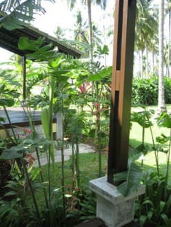 Blick von unserer Terasse zum Nebenbungalow