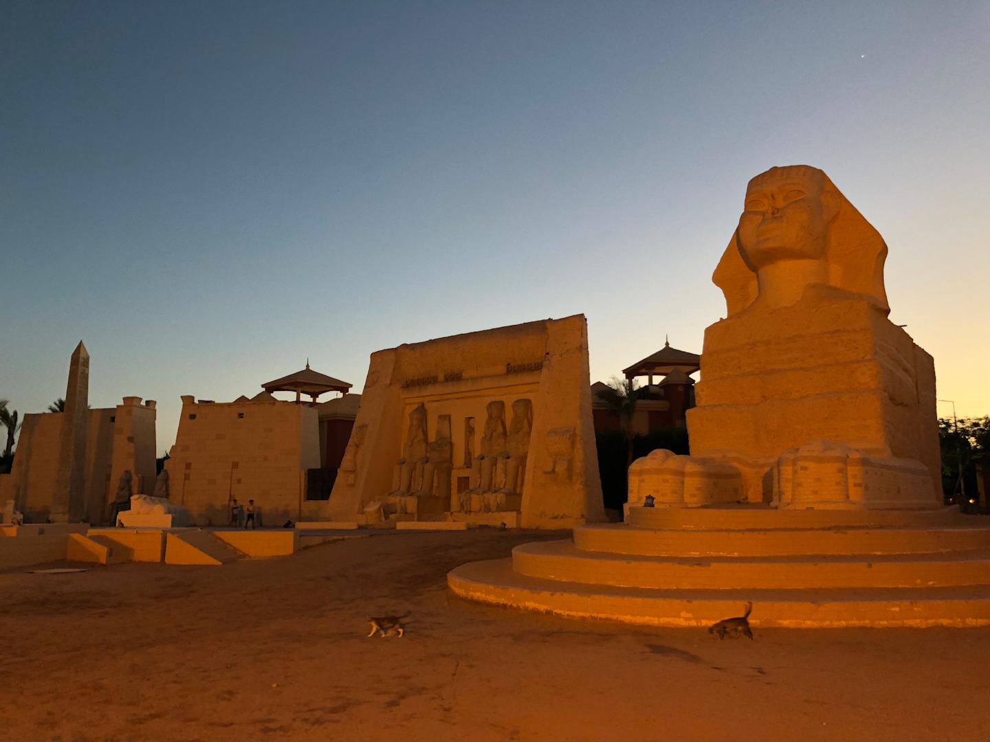 Das Amphitheater der Hotelanlage in der Dämmerung