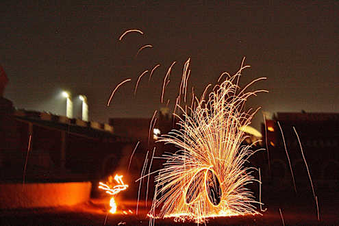 Feuershow in der toll gestalteten Arena