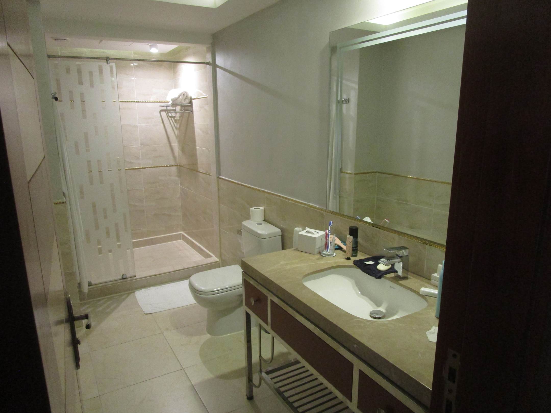 Badezimmer im Aqua Blu...(Doppelzimmer). Gibt schlimmeres (ja auch in 5* Hotels), immer sauber.....
