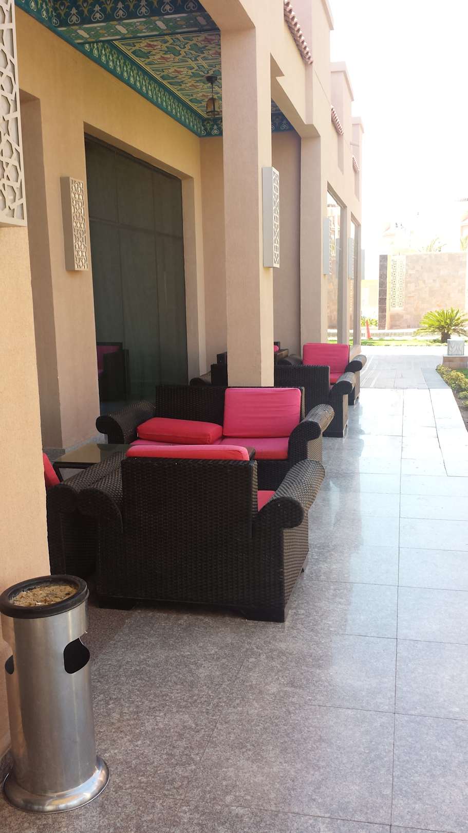 Draußen vor der Lobby gemütliche Loungegruppen