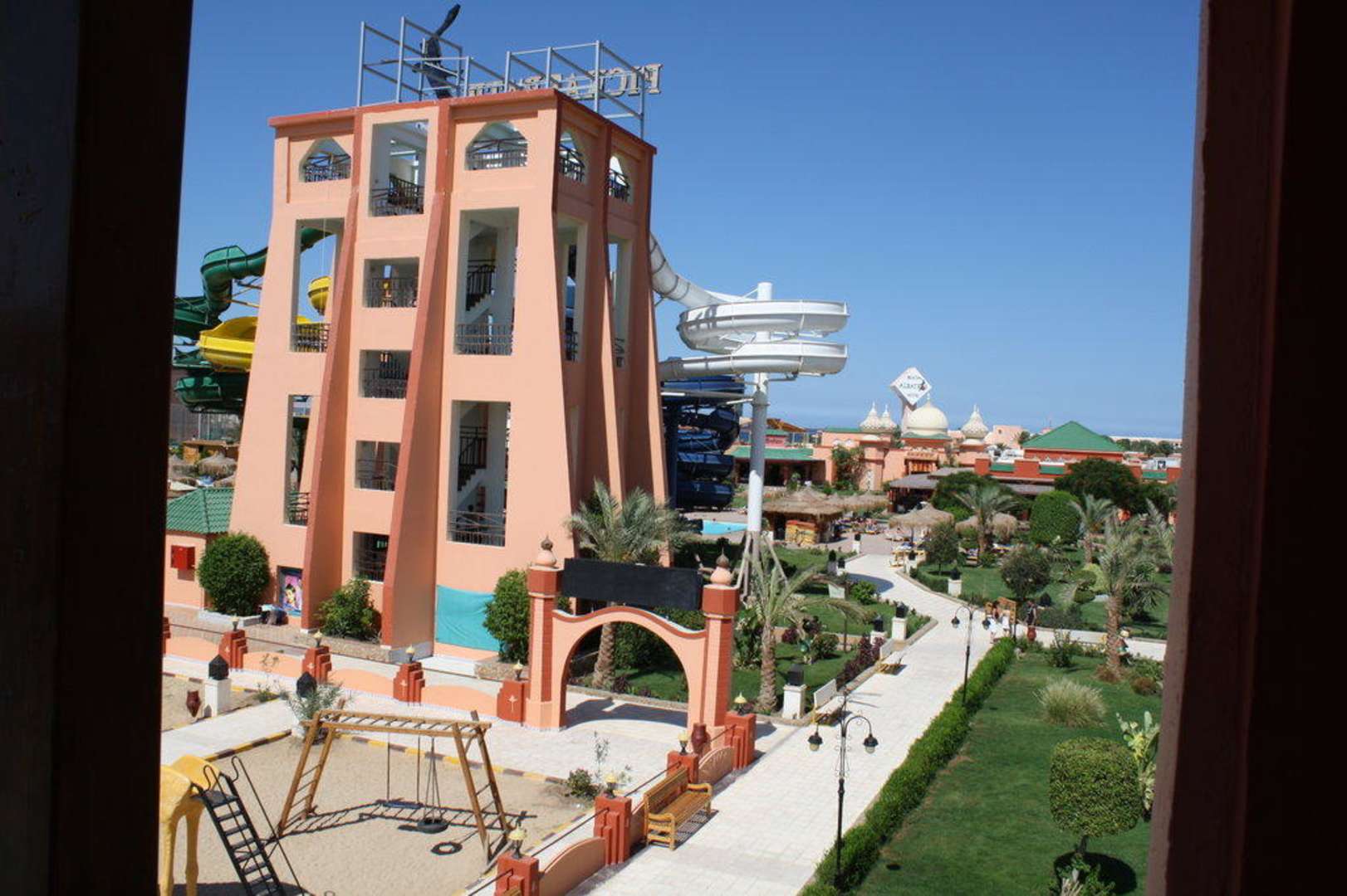 Blick vom Zimmer auf die Rutsche