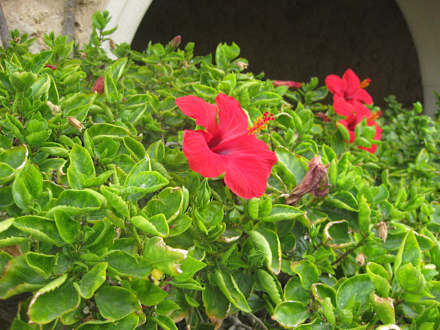 Такие кустарники цветков гибискус растут в отеле