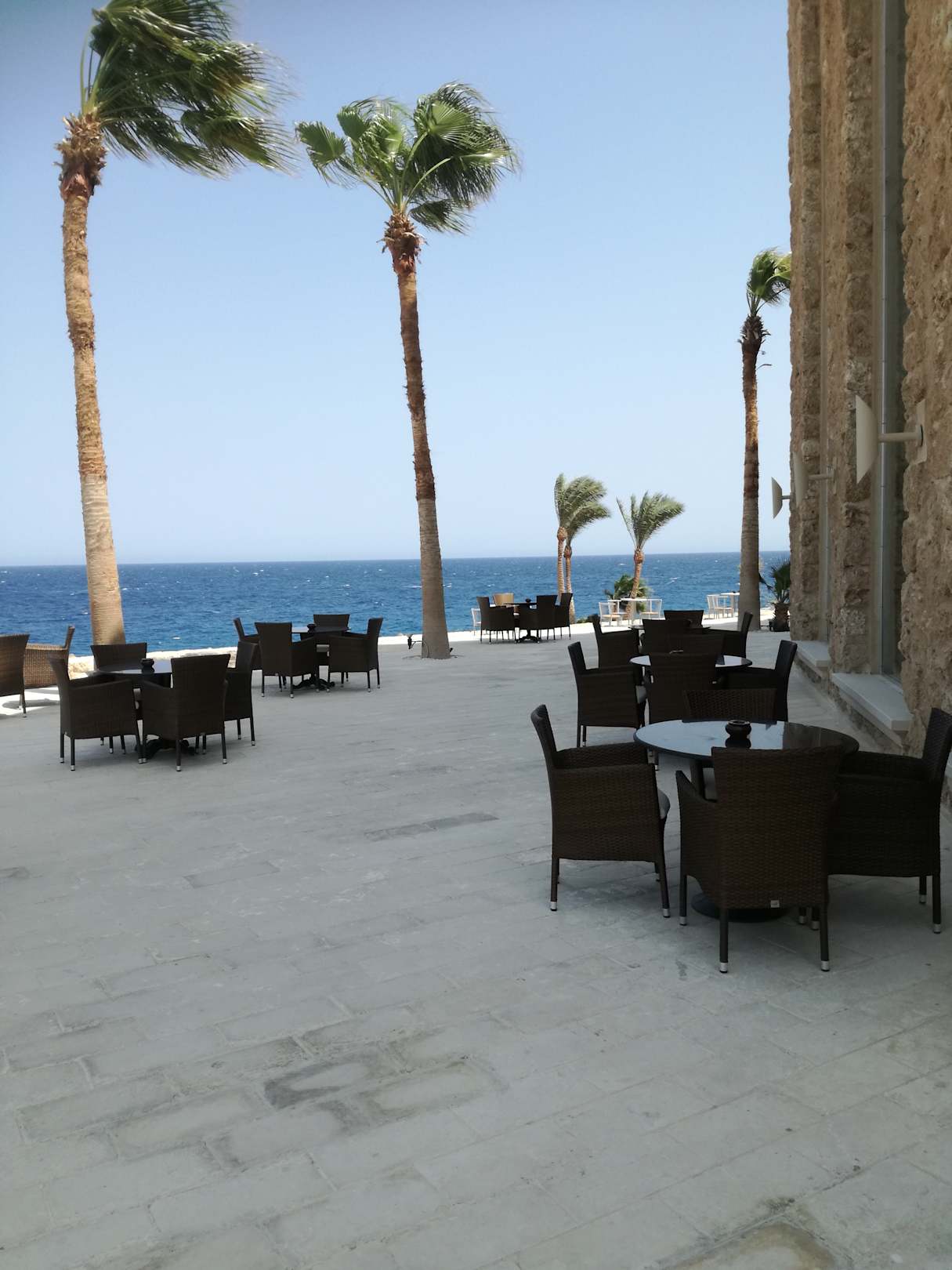 Außenbereich der Bar im Hauptgebäude.
