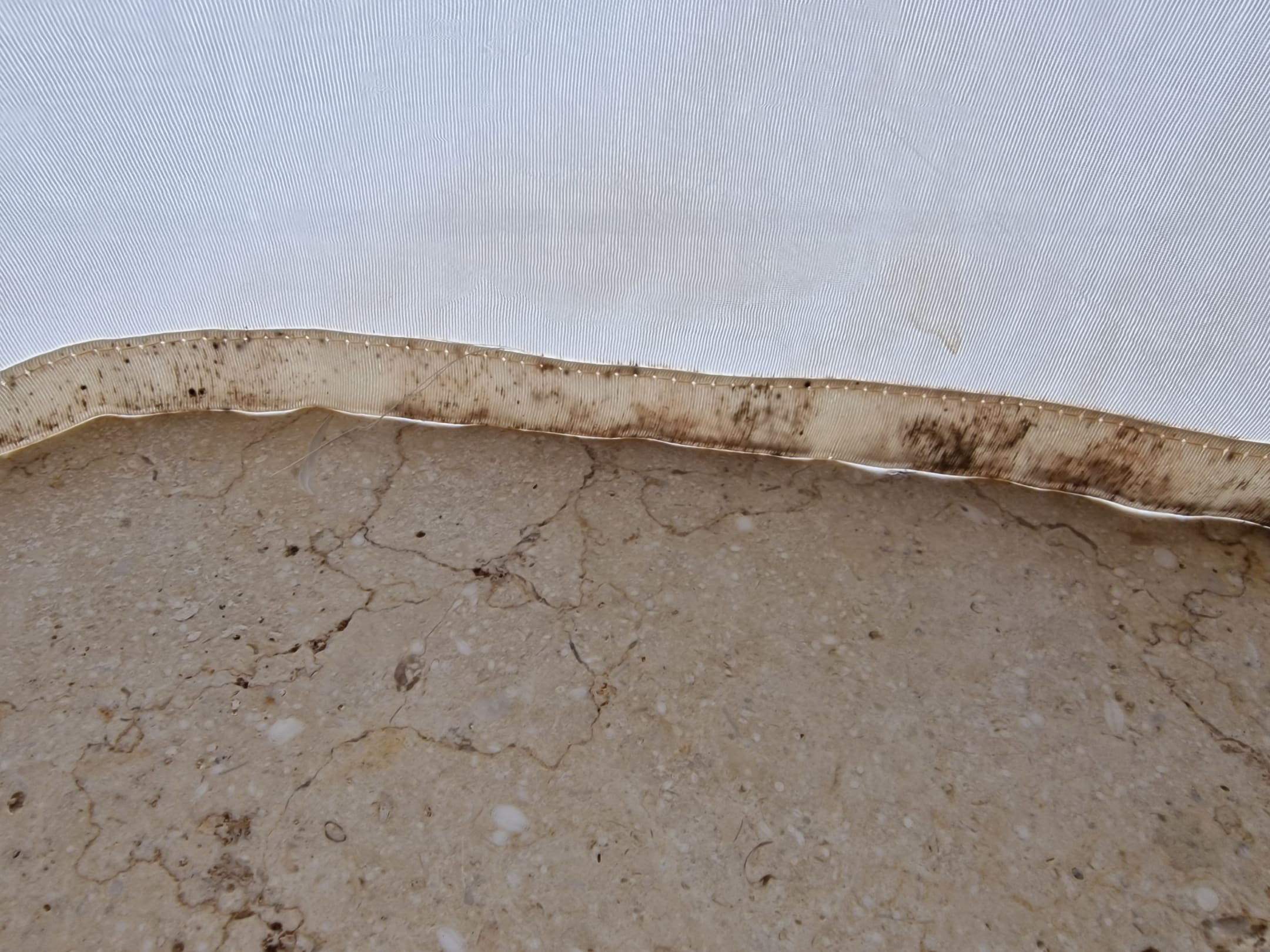 Vorhang in der Dusche Zimmer 5006 . Schimmel und nach außen auf beiden Seiten offen