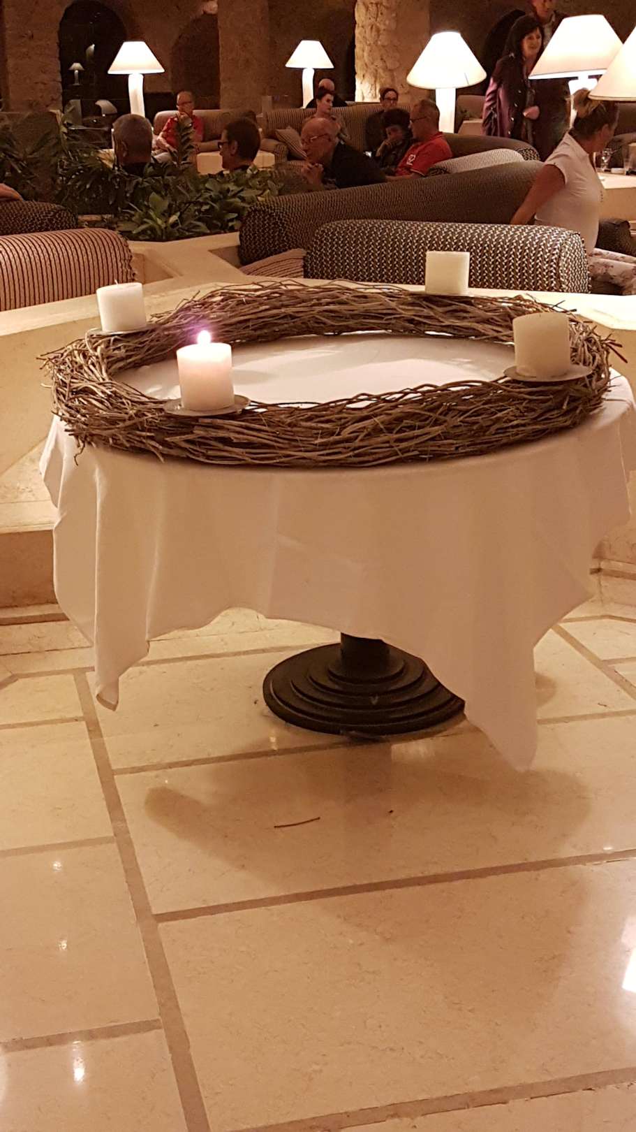 Adventskerzen später noch mit Weihnachtskugeln