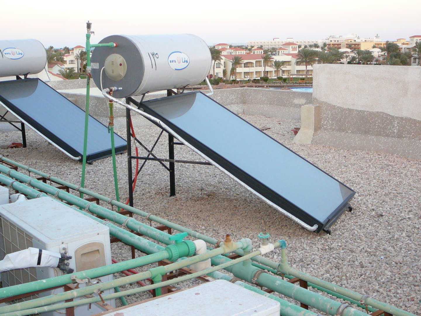 FunktioniertWarmwasser Anlage auf dem Dach