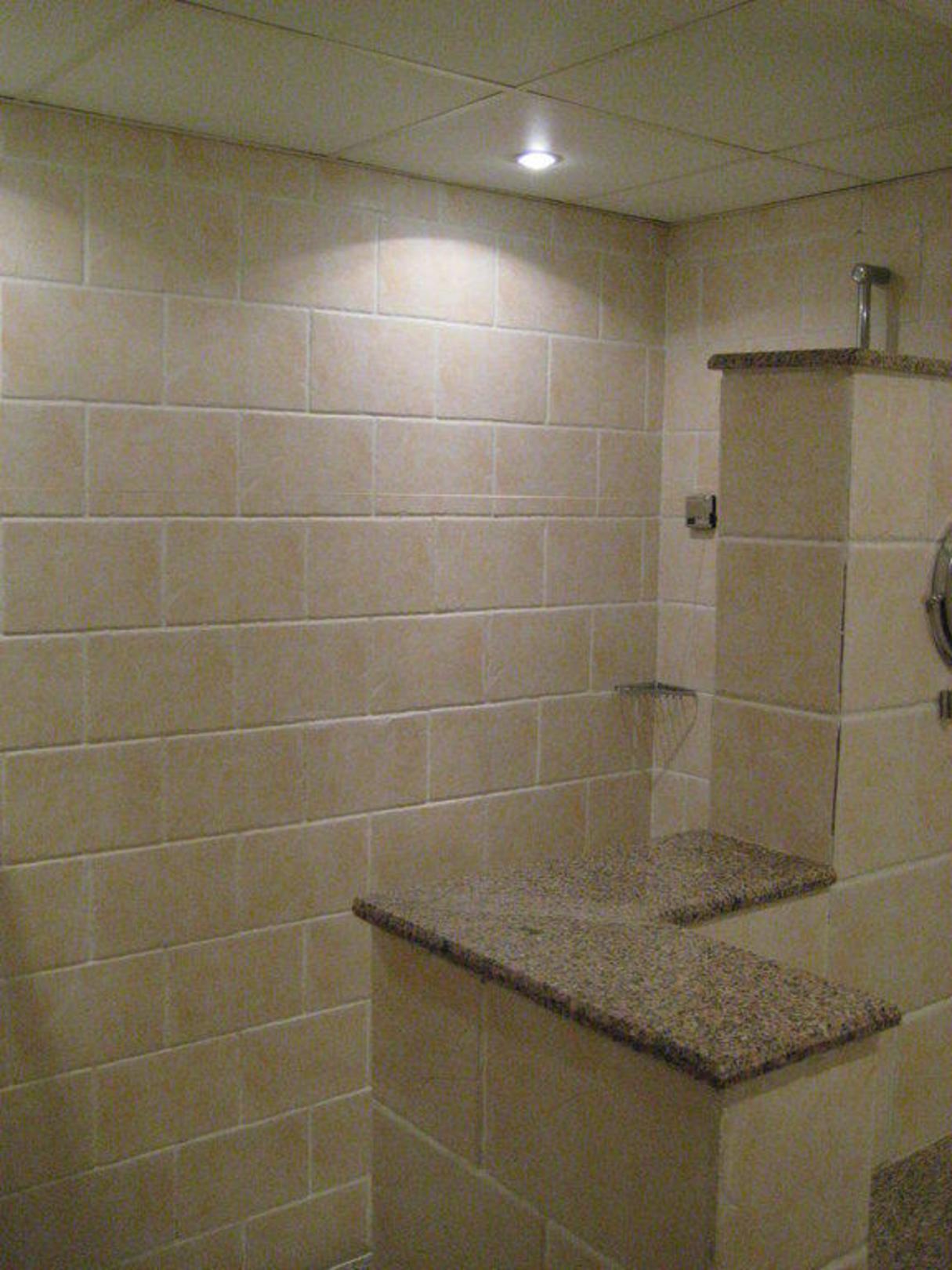 Dusche auf der linken Seite des Bades