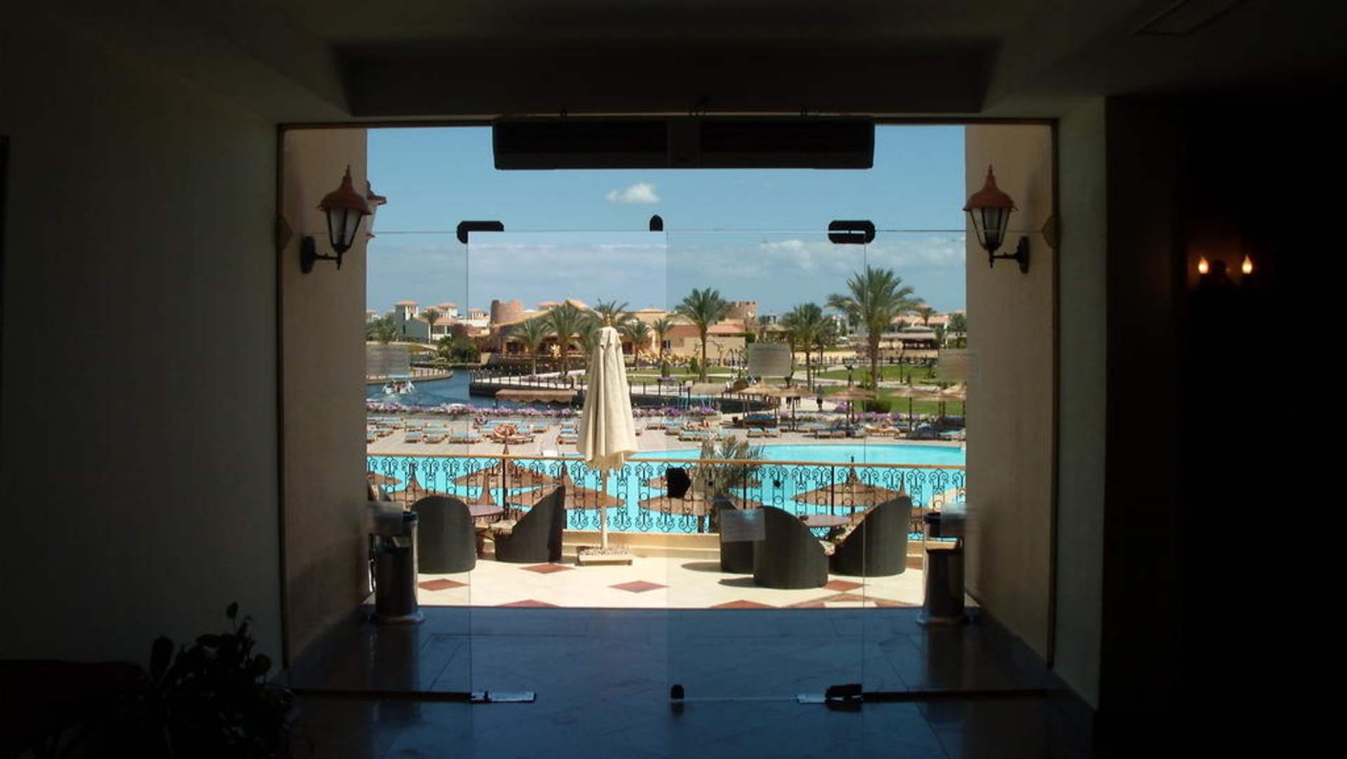 Blick aus der Lobby zu einem der Pool´s