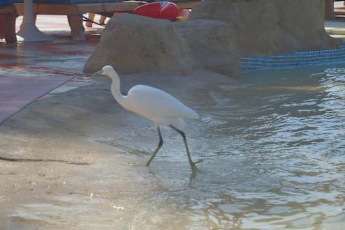 Ein Reiher besucht den Kinderpool