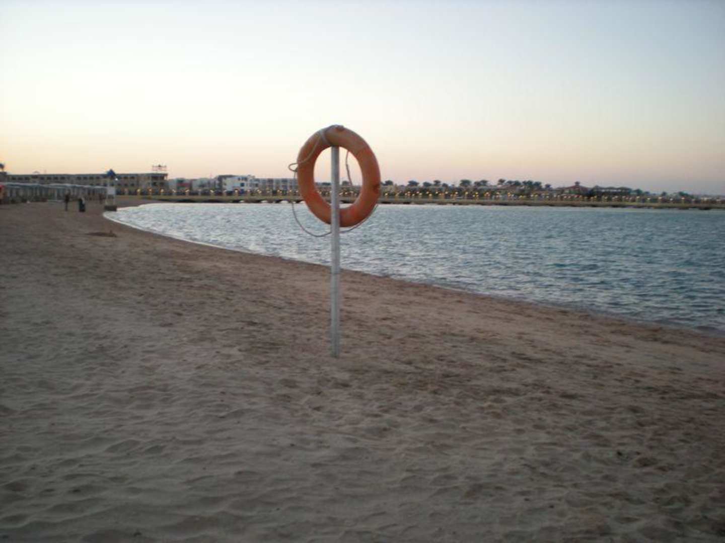 Sandstrand vom Hotel Dana Beach abends im WinterDer feinsandige Standstrand des Schwesternhotels "Dana Beach" bei Sonnenuntergang im Januar. Strand ist von Hotel (Jungle Park) in ca. 5-10 Minuten Gehzeit erreichbar oder mit Gratis-Shuttlebus. Schoener Sandstrand mit Liegen und Sonnenschirmen.