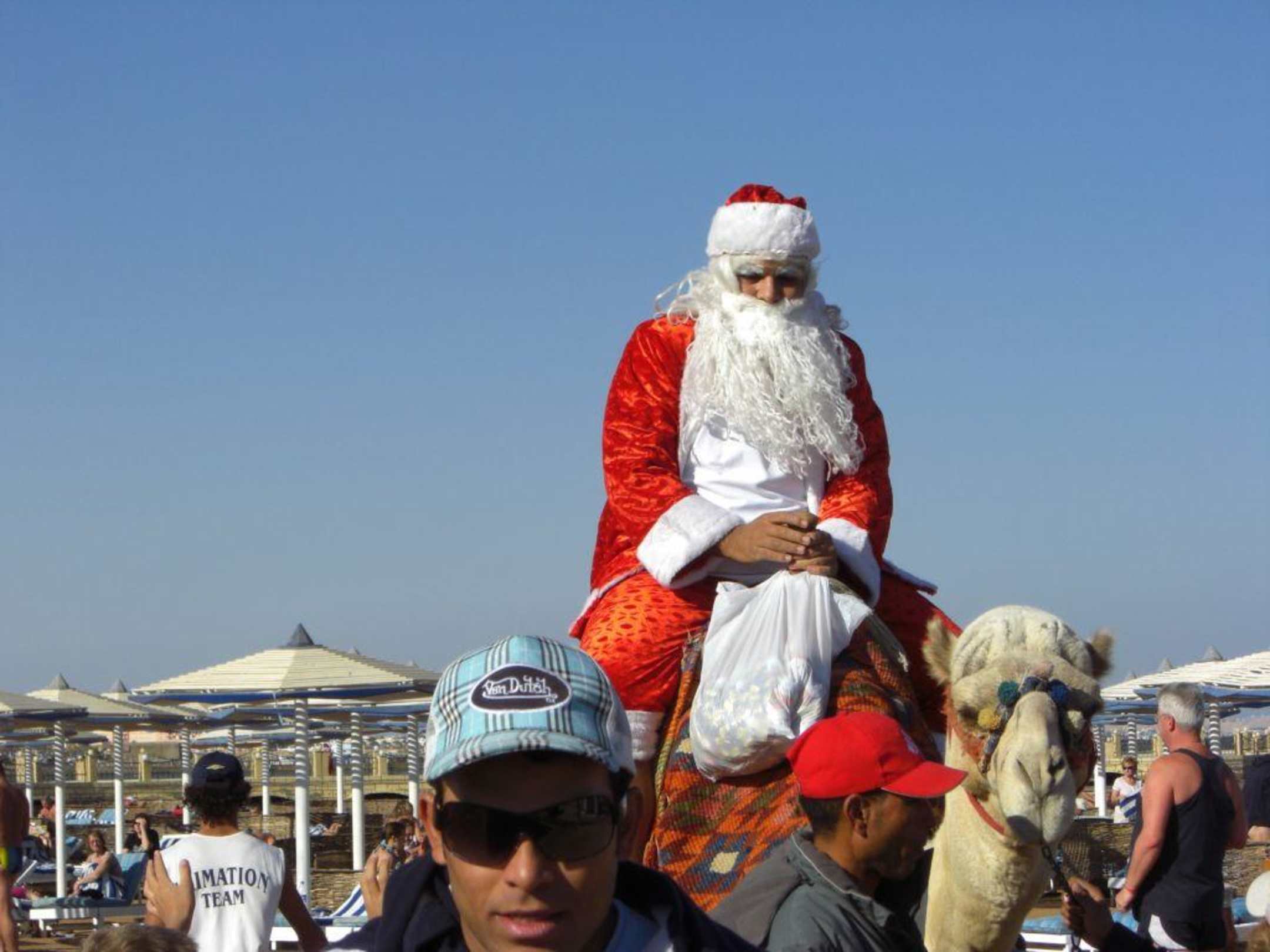 Weihnachtsmann am Strand um 10 Uhr morgens.