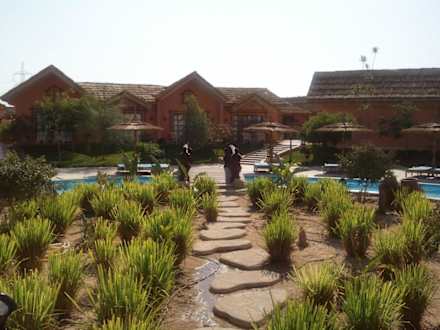 Auf dem Weg zum Zimmer über die Pools