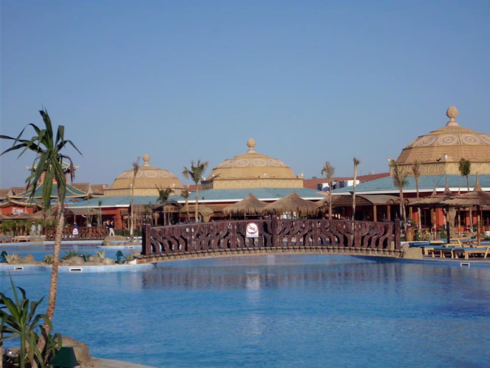 Blick vom Pool auf die Restaurants