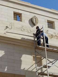 Der Schriftzug "Intercontinental" wird abmontiert