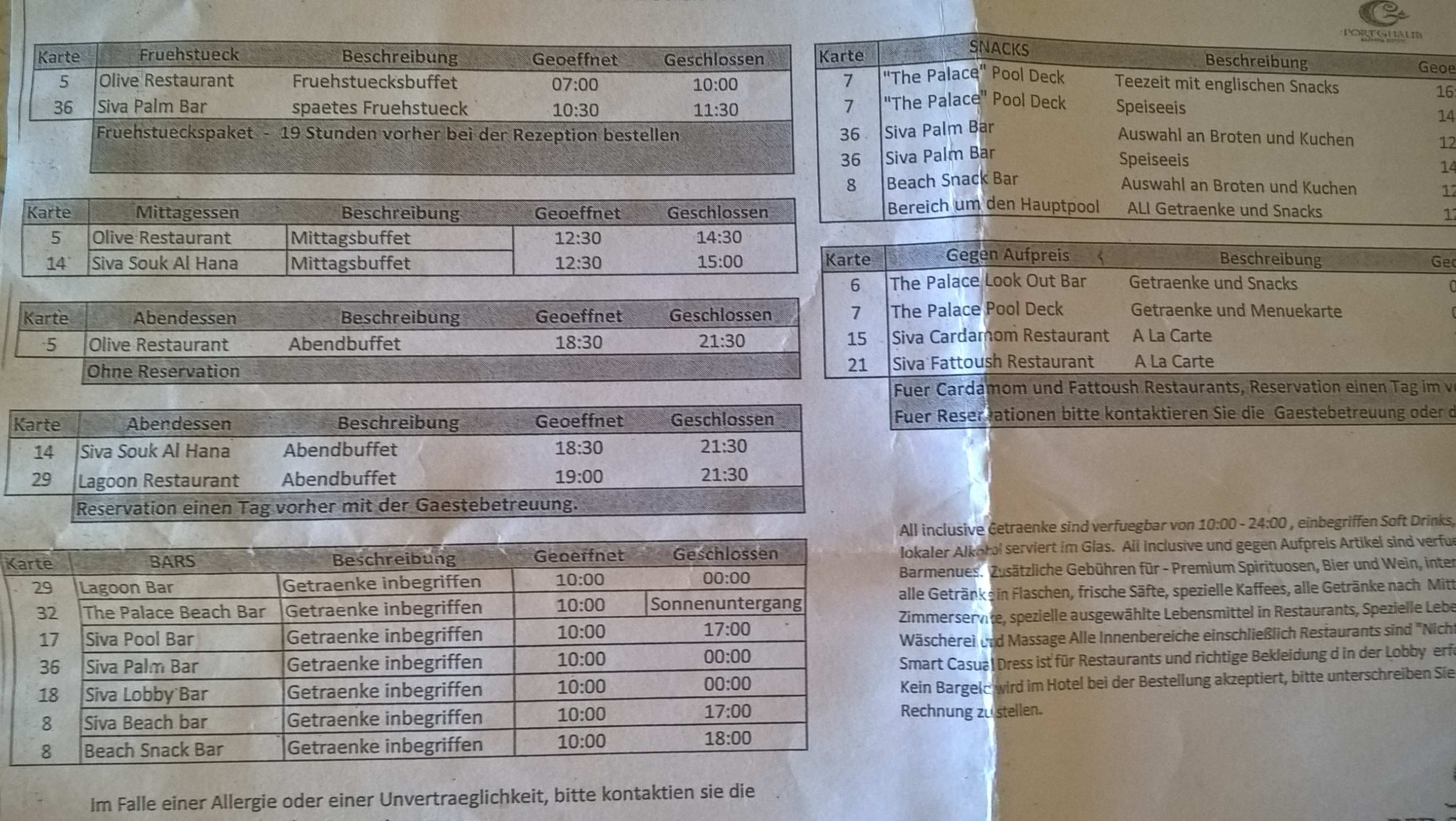 RestaurantPlan des AL INKLUSIVE KONZEPT
