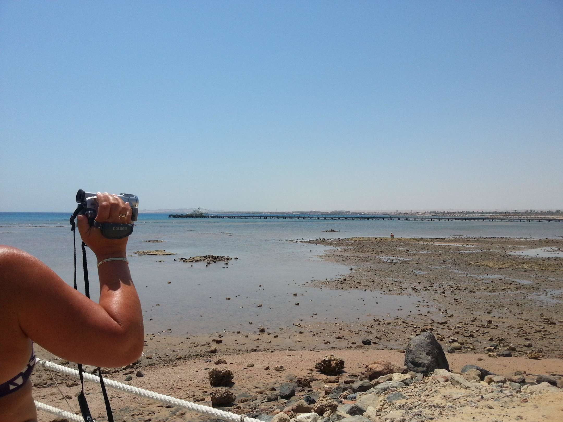 Slecht strand., gelukkig begint de pier hier al.