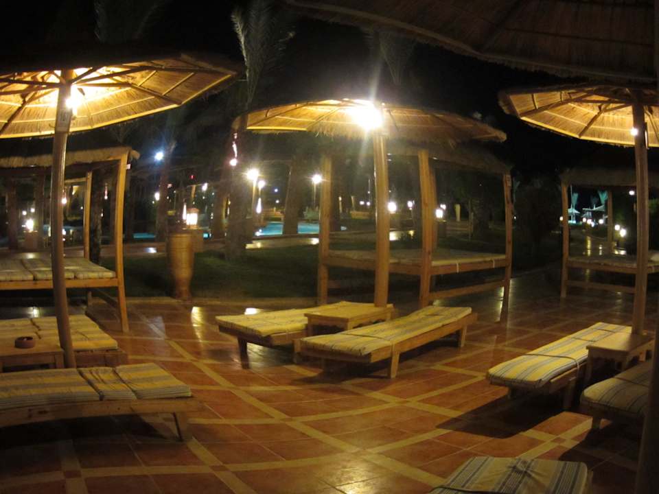 Liegen beim Pool am Abend