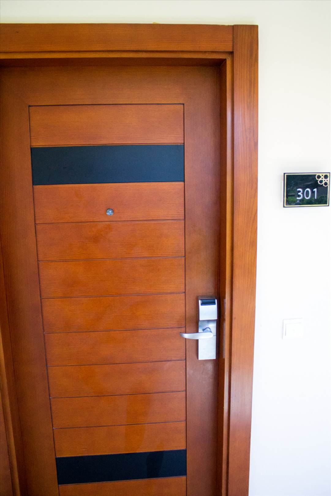 Unser Zimmer. rechts neben der Türklinke ist die Türklingel