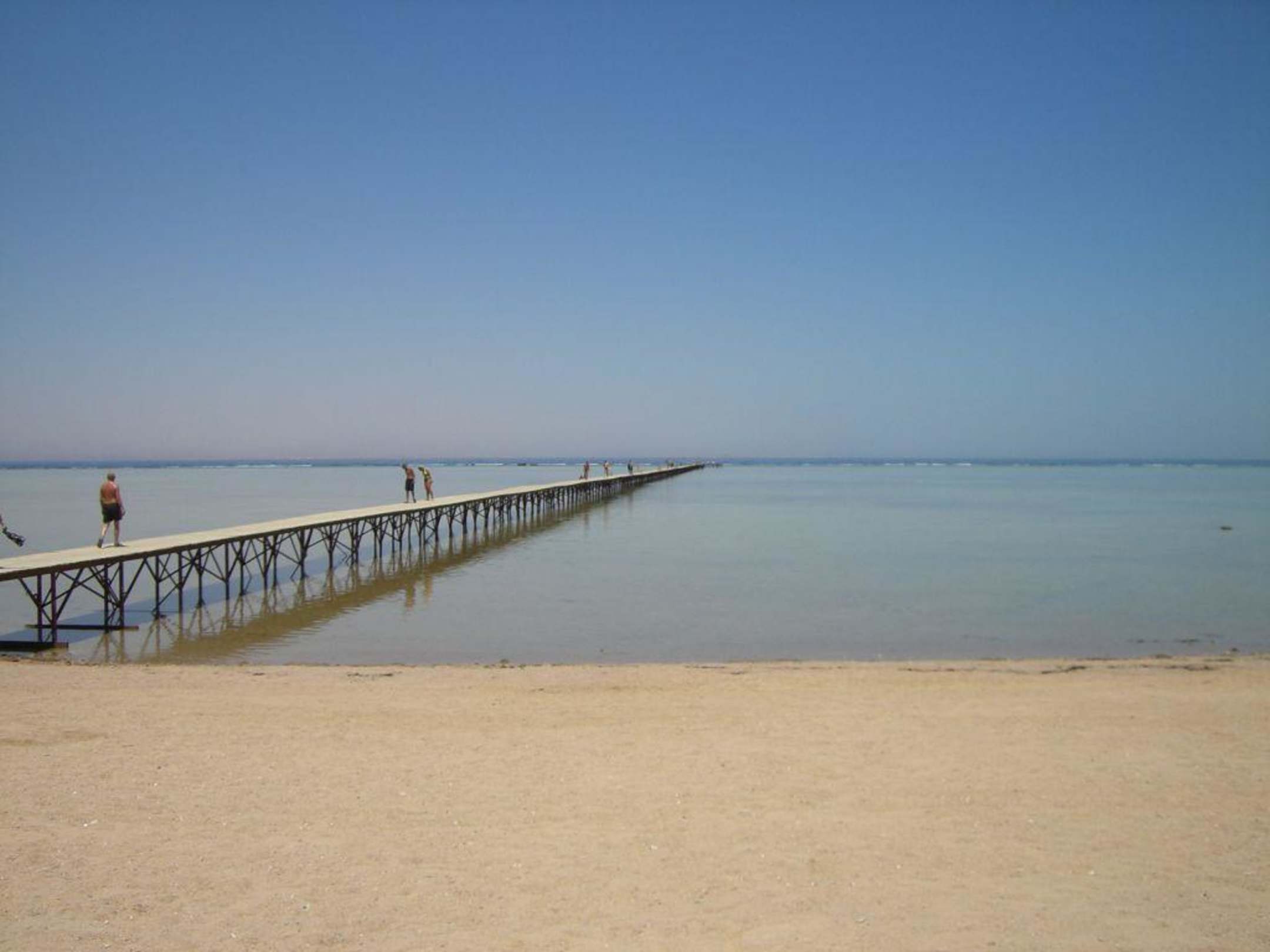 Strand mit Stegnur 400 m langer Steg trotz 600 m langes vorgelagertes Riff, höchstens 60 cm tiefes Meer, --> ein totaler Reinfall