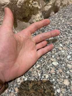 Steinwände die nicht eingelassen werden bröseln. blöd das es unser Tisch war beim Abendessen
