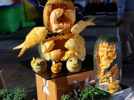 Toll geschnitzte Melonen am leckeren Buffet