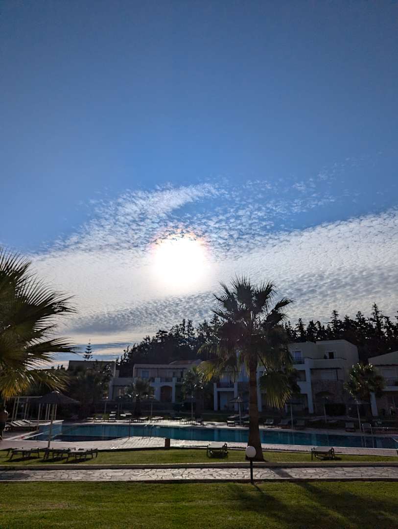 Blick aus dem Zimmer auf kleinen Pool