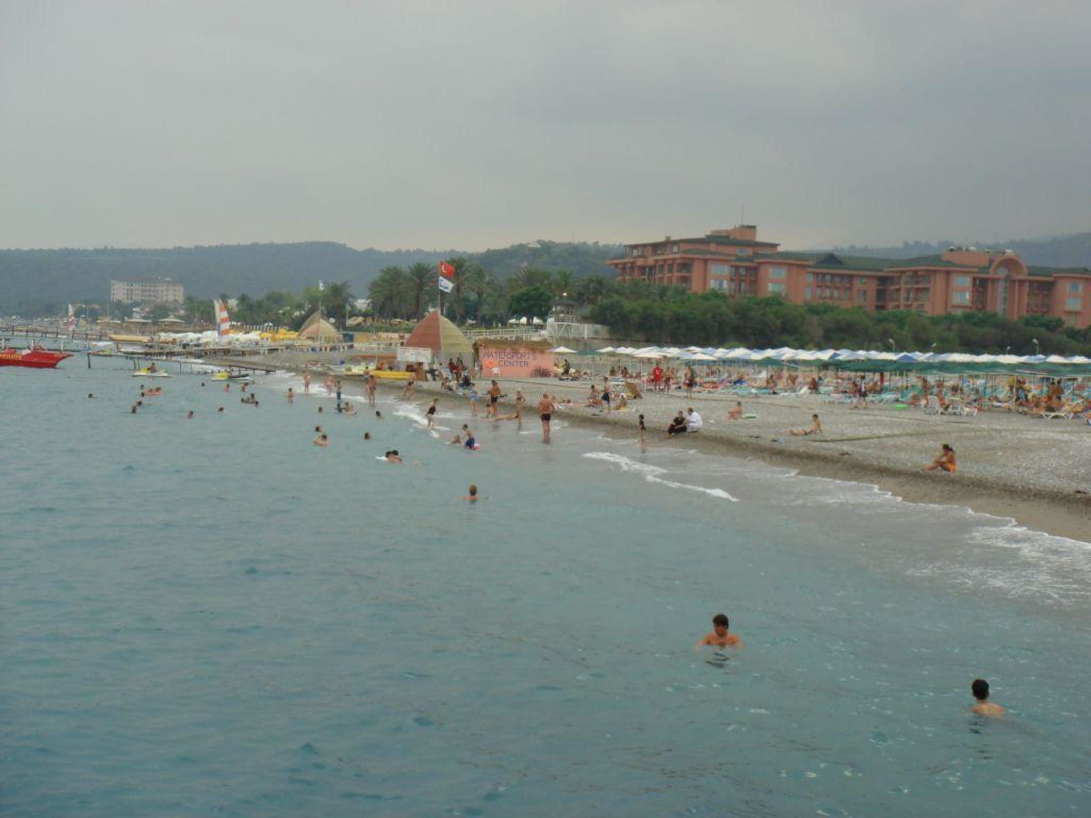 Aufnahme vom Hotel eigenen Strand vom Steg des Nachbarhotels aus