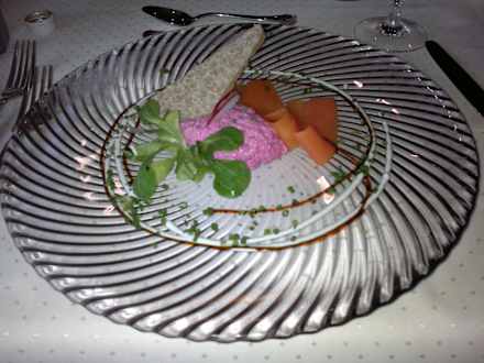 Rotes Rüben Mousse mit Karottenmarschel