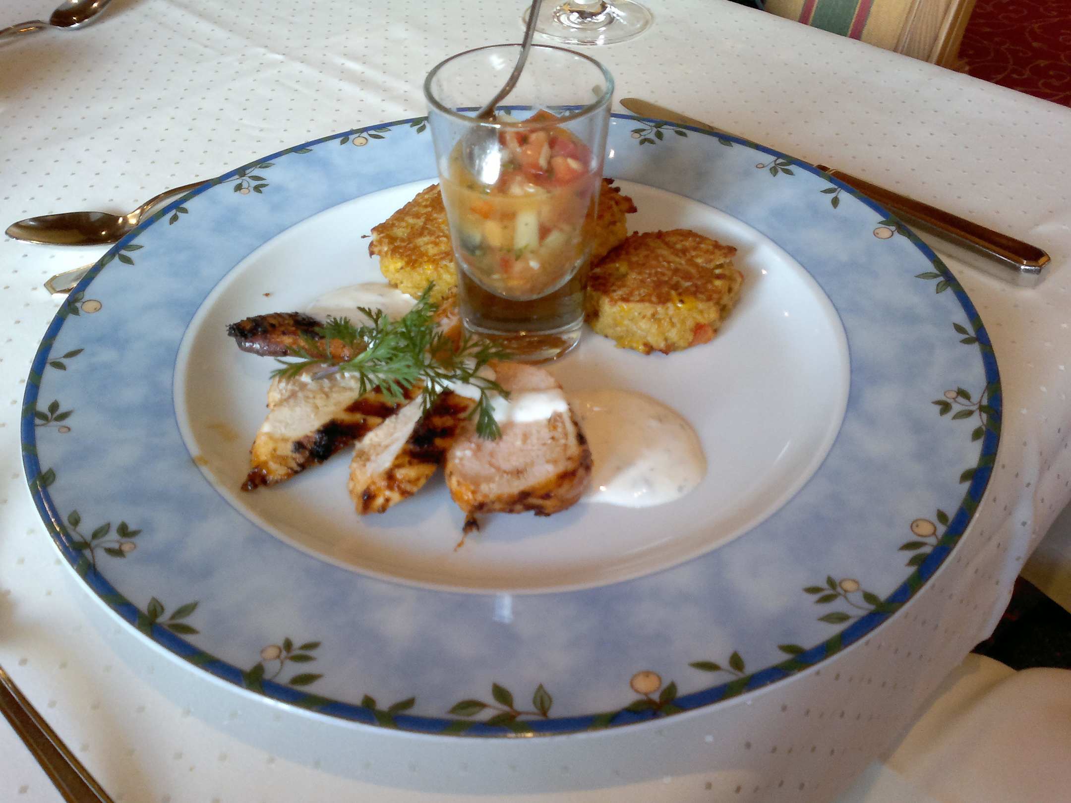 Hühnerbrüstl auf geräucherten Maisgaletten