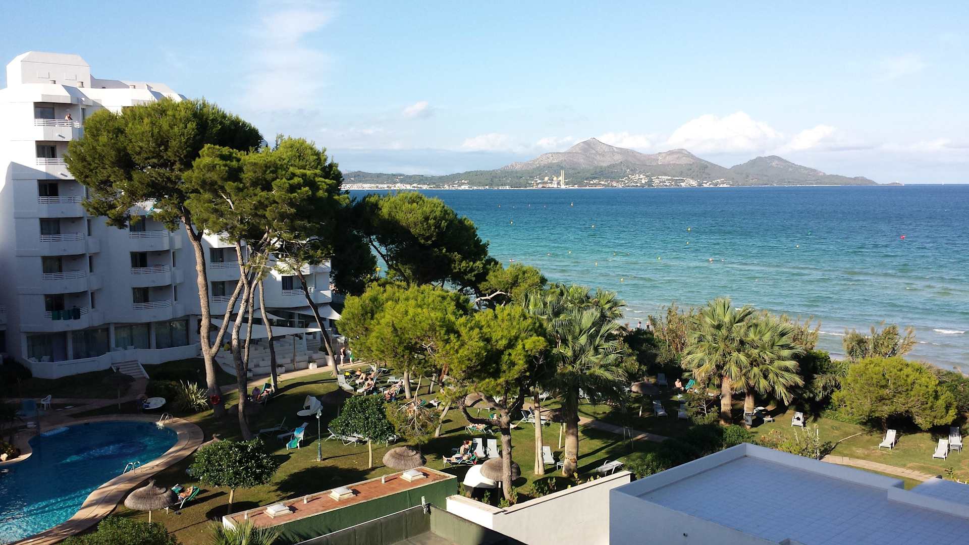 Blick vom Zimmer zum Nachbarhotel und Kinderpool