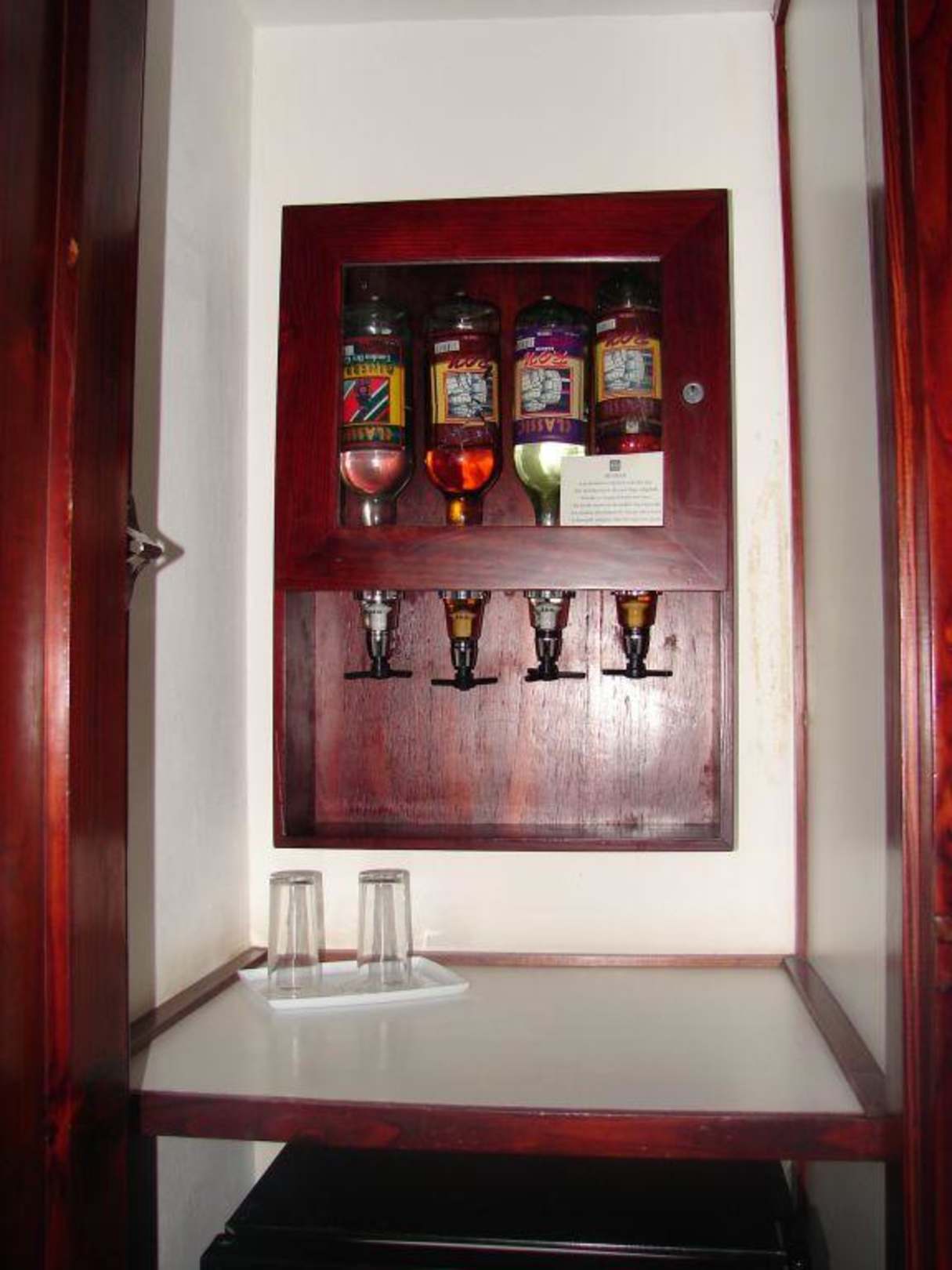 MinibarViel Arbeit für 14 Tage. 2 x Rum 1x Gin und 1x Wodka, wird aber alle 2 Tage aufgefüllt, wenn es leer ist.