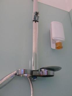 Ein Duschkopf mit DurchhängerEin Hotel, was vor 8 WOchen neu eröffnet hat sollte solche Dinge nicht präsentieren. Fehlende Duschkopfhalterung, wackelige Duschstange