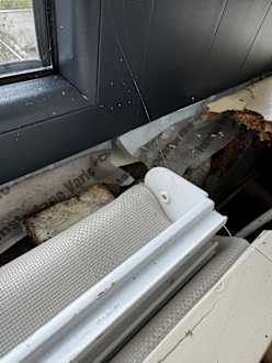 Fensterbank mit Spinnweben