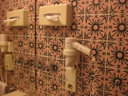 Bad mit Fön und Kosmetiktüchern