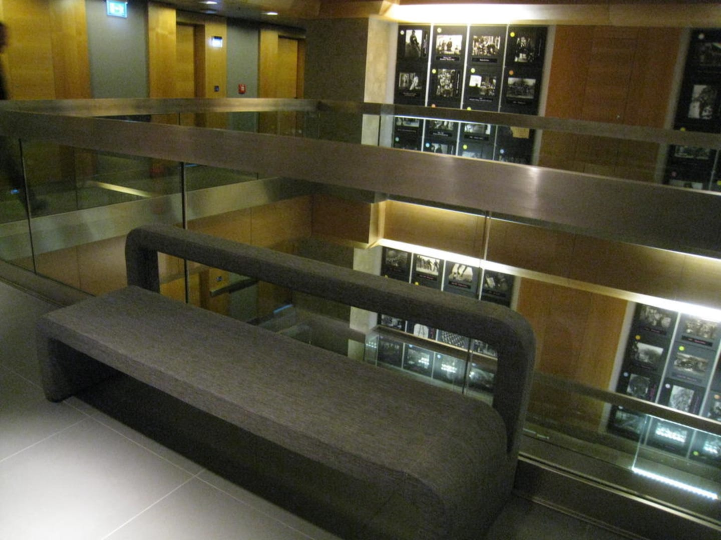 Eine Sitzbank im Gang vor den 3. Aufzügen.