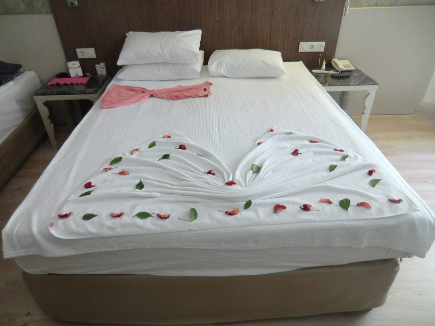 Bett mit Blumen geschmückt