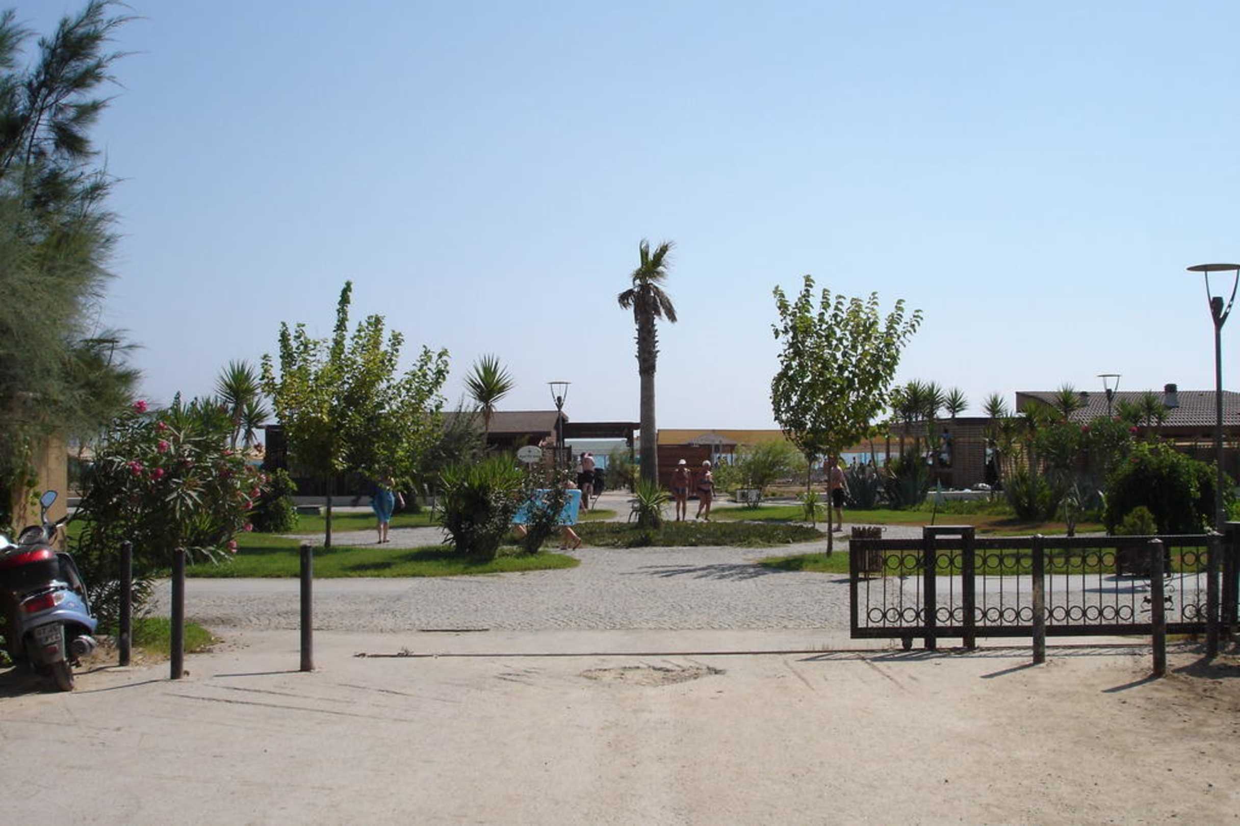 Strandpromenade mit Zugang zum Hotelstrand mit Strandbar
