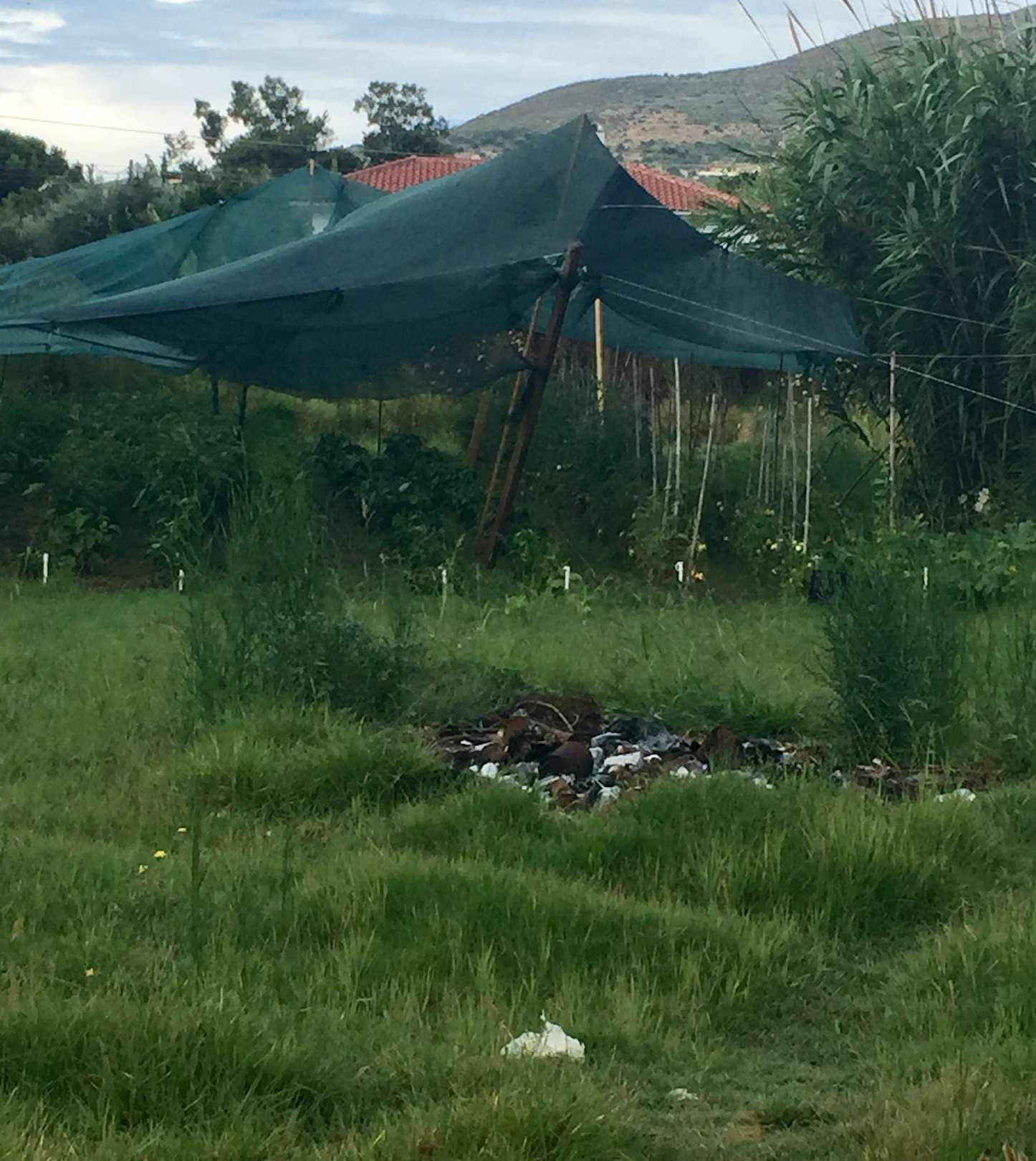verbrannte Gemüsedosen vor Gemüsegarten